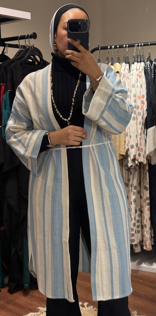 Striped with Belt Cardigan – Baby Blue