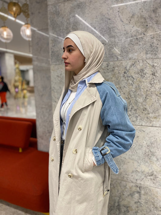 Denim Sleeve x Gabardine Trench Coat
